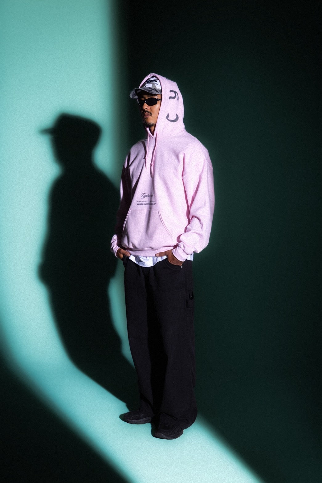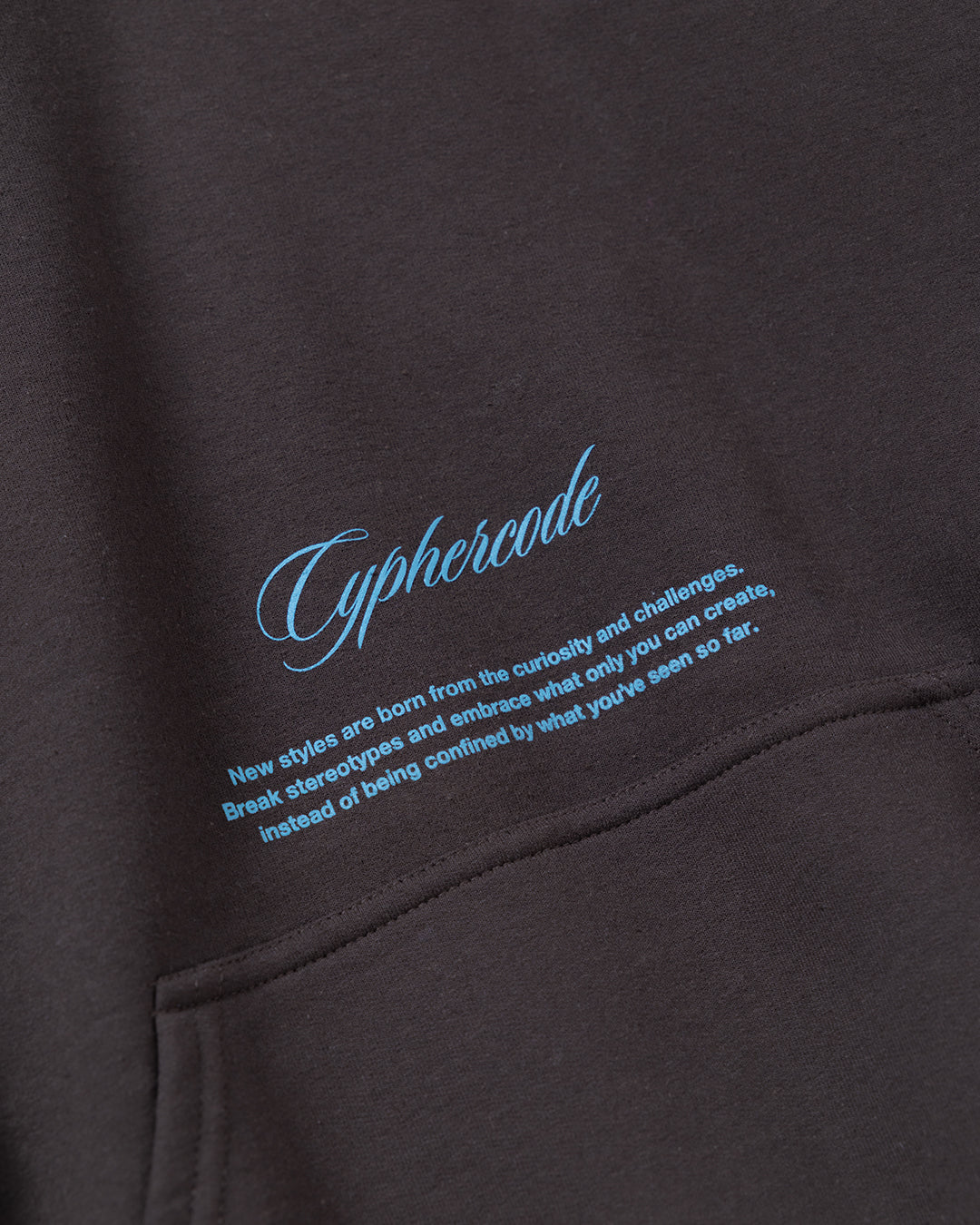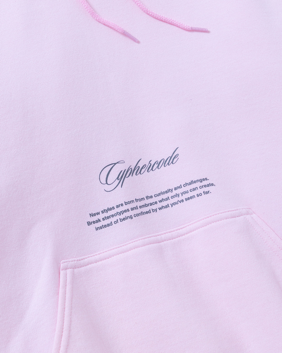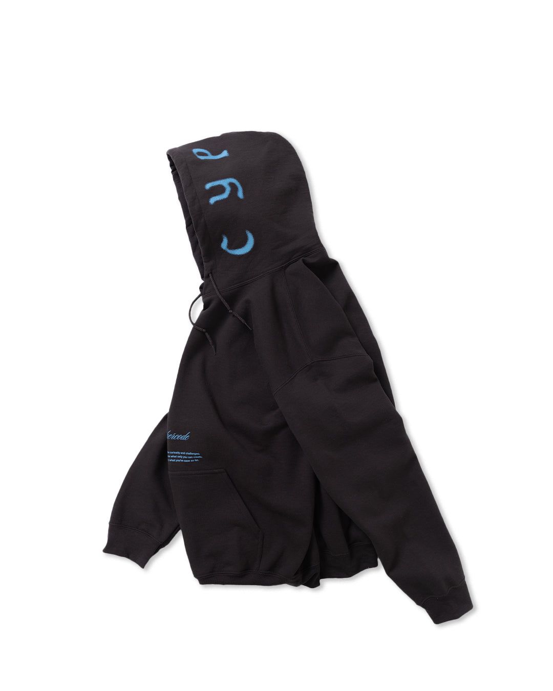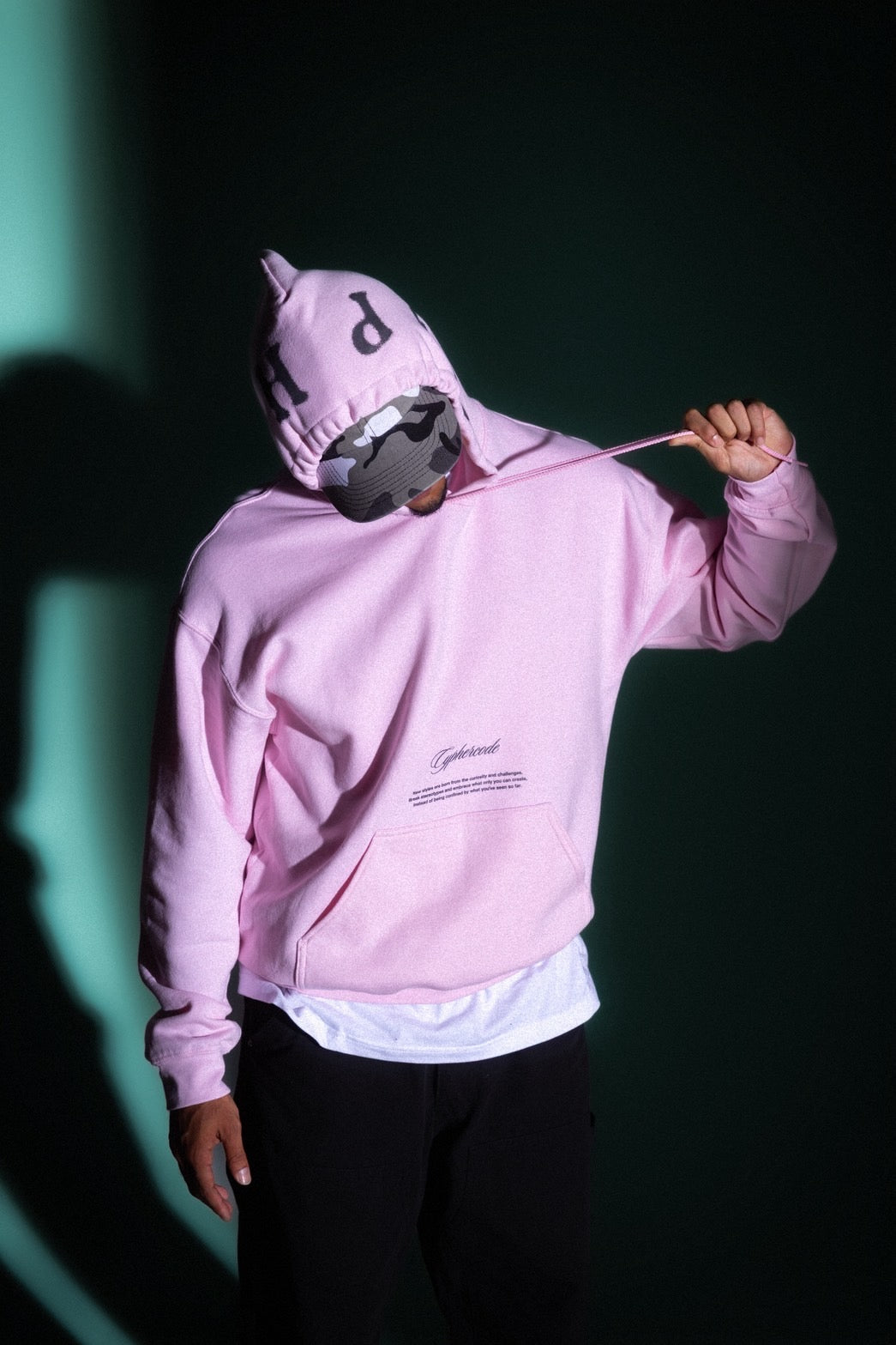 “CYPHER”のレタリングを大胆にフードに跨って配置した、インパクトのあるフーディ。