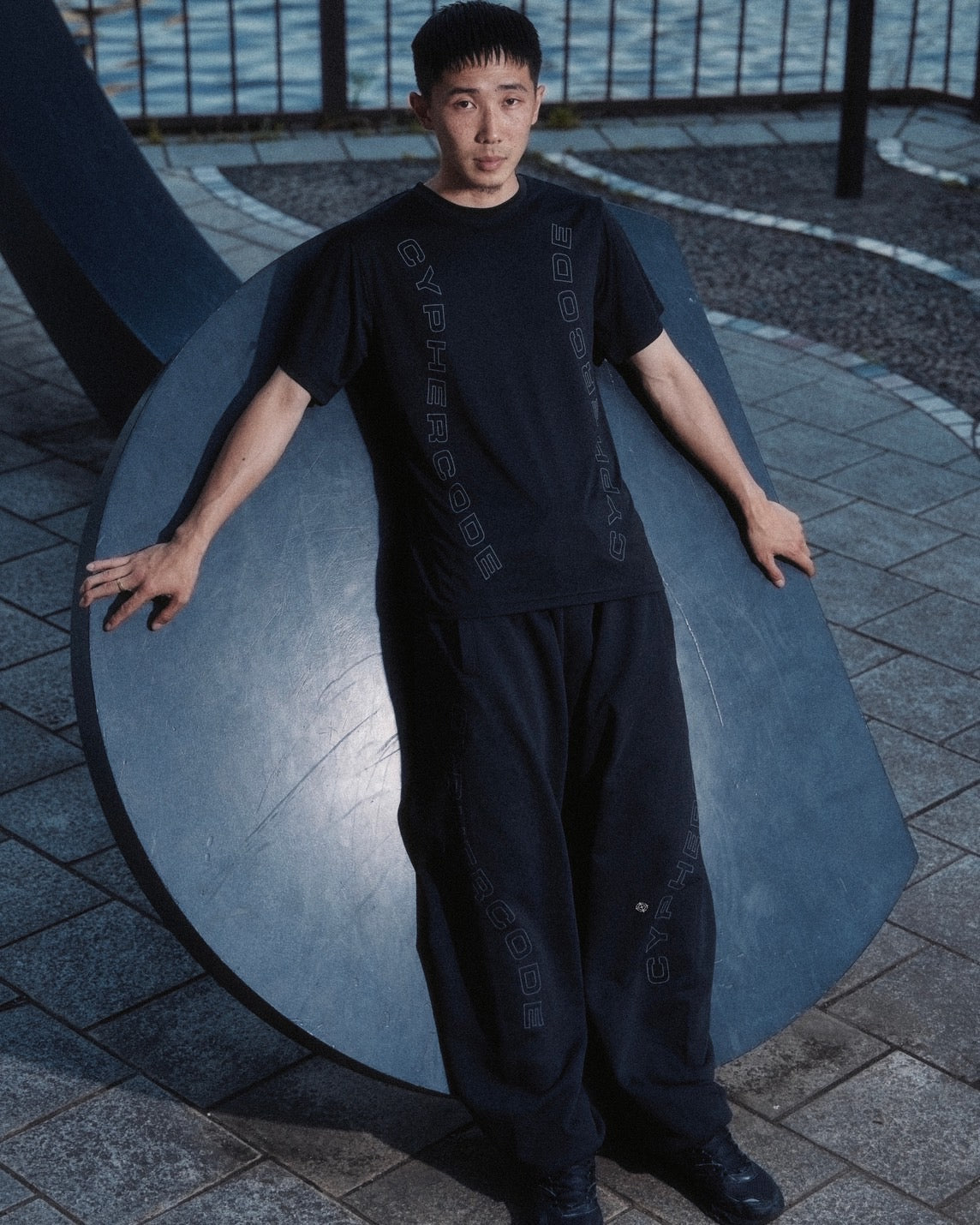 両脚に流れるように配した反射ウェーブロゴと、膝下の立体刺繍が動きに表情を与える。