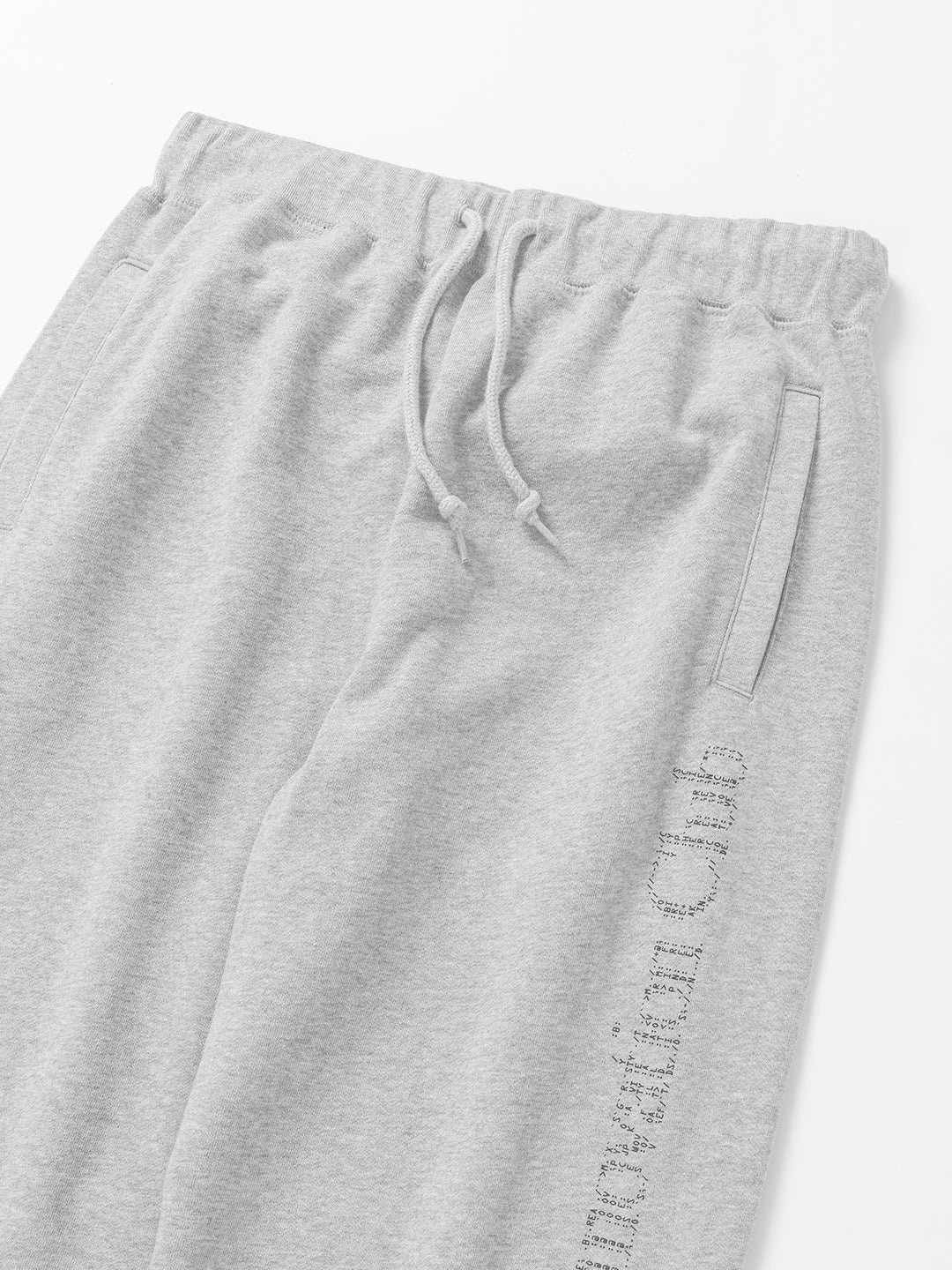 Break Innovation Clubの哲学=「創造」と「挑戦」を、暗号のように連なるグラフィックで表現したスウェットパンツ。
